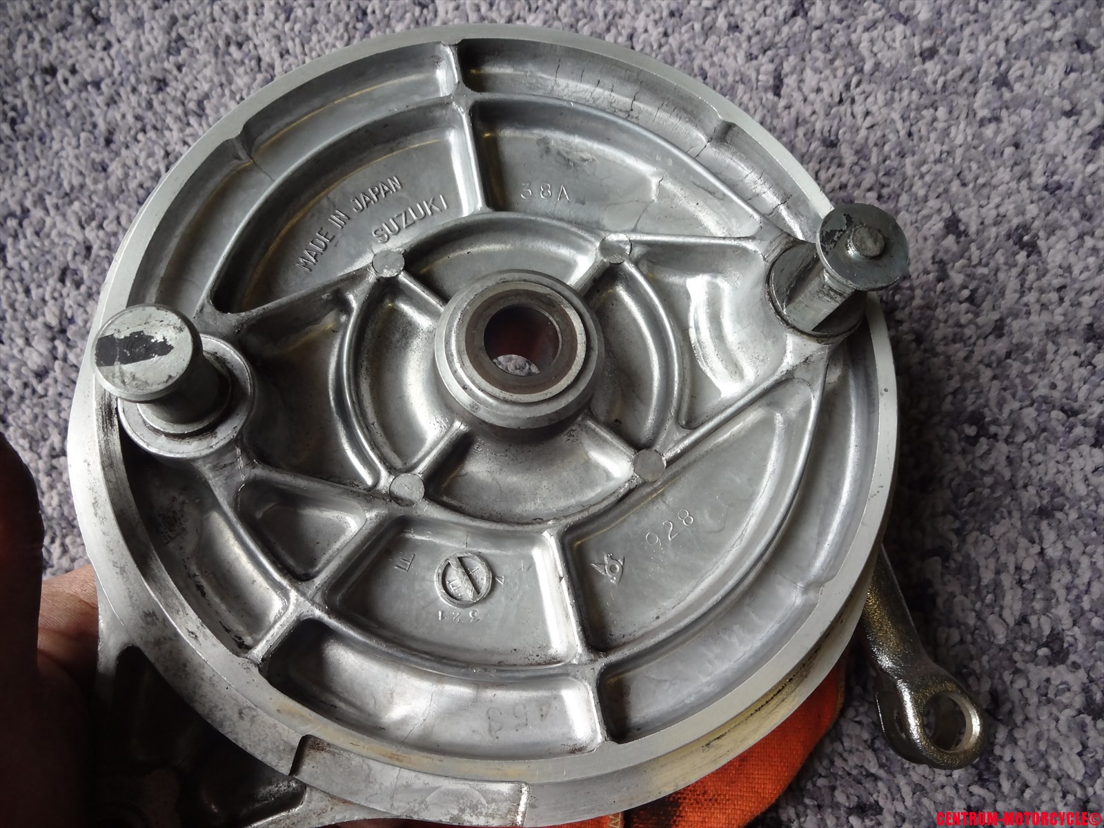 ドラムパネルから古いブレーキシューを取り外してっと。