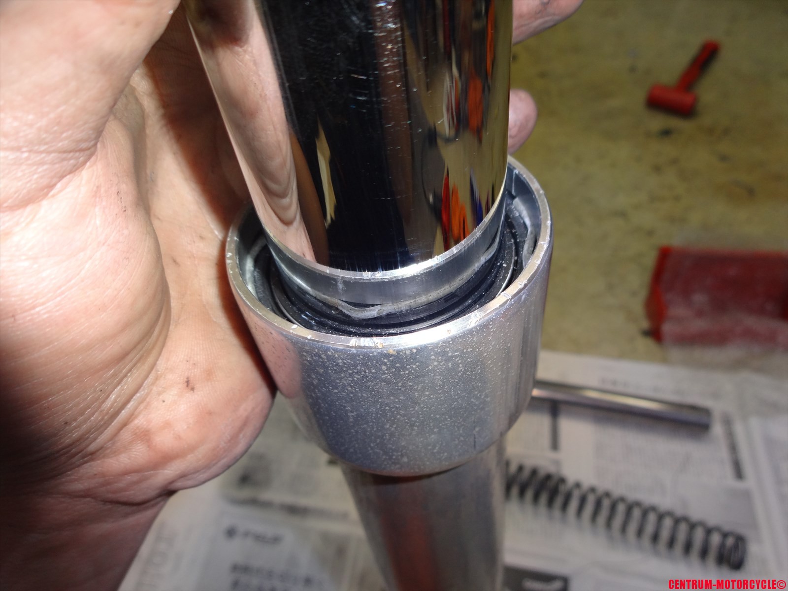 ドレンボルトを取り付けたらアウターチューブを入れていきますが、