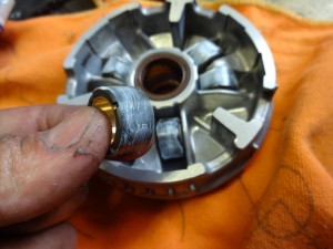 分解したプーリーに新しいウェイトローラーを組み入れていきましょう。