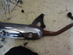 サイレンサー部の仮固定が終わったら、フランジ部から先に締め付けて行きます。