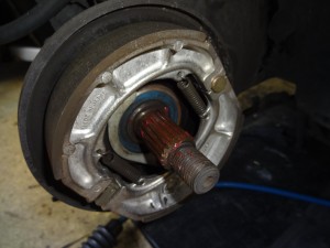 リヤブレーキシューのカムの動きのチェックと、エアーブローして