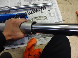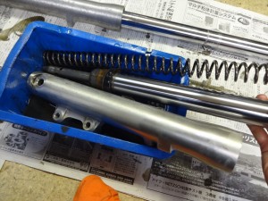オイルシールを固定しているクリップをアウターチューブから取り外します。