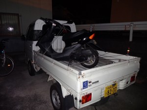アメリカンを軽トラックに積んでいた為、後方の扉(あおり)が締め切れず、