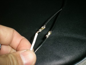 溶接部分を予め配線内に通しておいた、熱収縮チューブを被せて