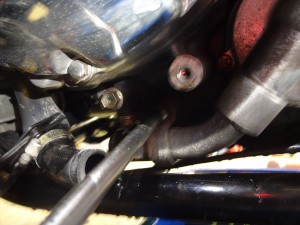 まずはエンジン側に向かって固定しているボルトを取り外します。