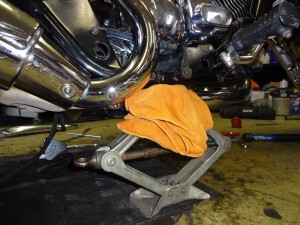 まずはフレーム部にジャッキを当ててある程度持ち上げます。