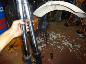 んじゃ今日はフロントフォークの取り外しまで完了したのでこれぐらいで。