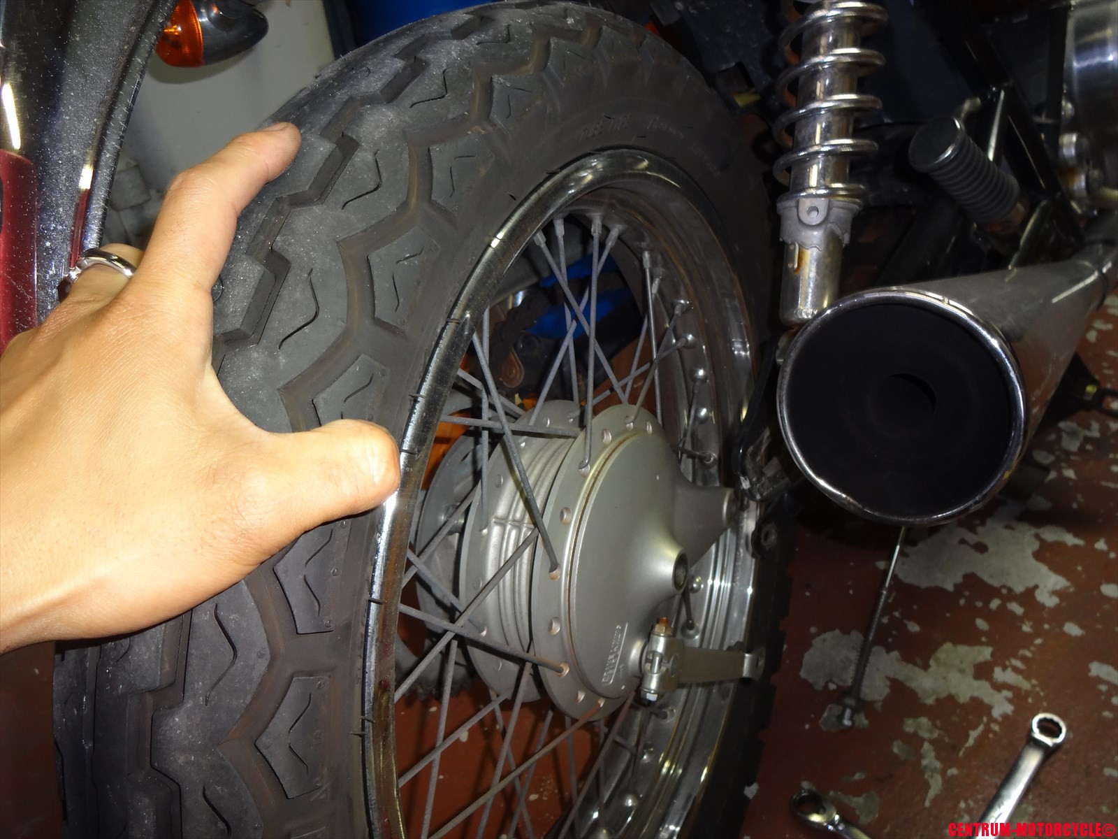 問題のリヤタイヤをぐるぐる回して確認してみると・・・