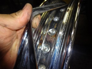 チェーンを取り外したら、ホイールを車体にぶつけて