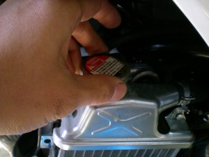 小排気量で液量も少ないのでクーラントの出る勢いもおとなしめ。