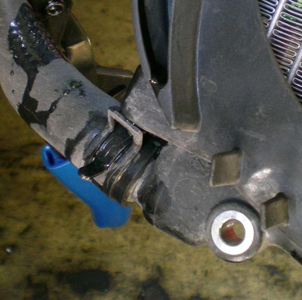 次はラジエターキャップ部のリザーブタンクとの接続ホースもクランプします。