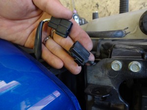 反対側に回って燃料メーターの配線カプラを取り外します。