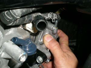 とりあえず一旦話をサーモスタットのボルトを外す所まで戻します。