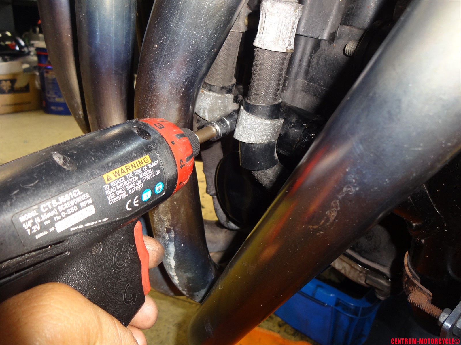 まずはオイルクーラーのホースクランプを取り外してっと。