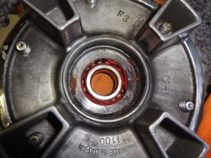 スプロケットハブを裏返してベアリングにグリスを塗っておきましょう。