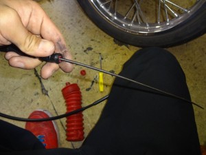 ケーブルを引き抜いてから、位置口付近にグリスを塗って、グリスに