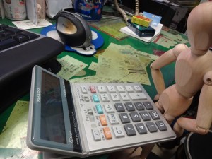 納品書を作りながら電卓をはじいてなにやら考え込んでいます・・・・