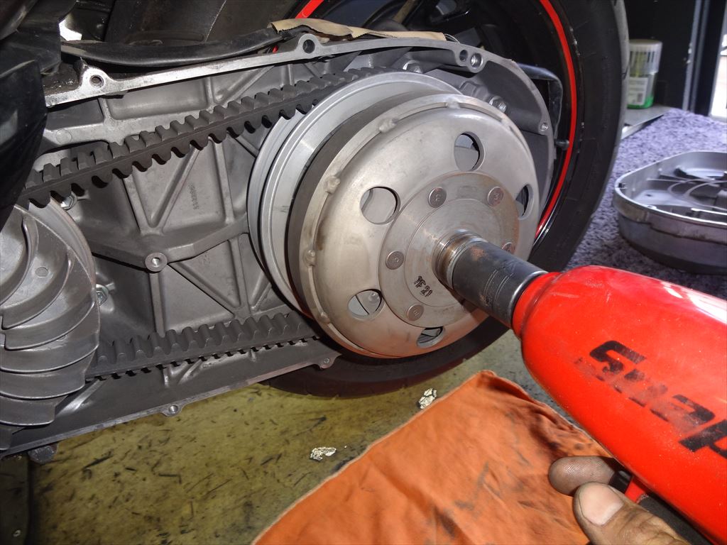 それからインパクトレンチを使用してクラッチのセンターナットを取り外しましょう。