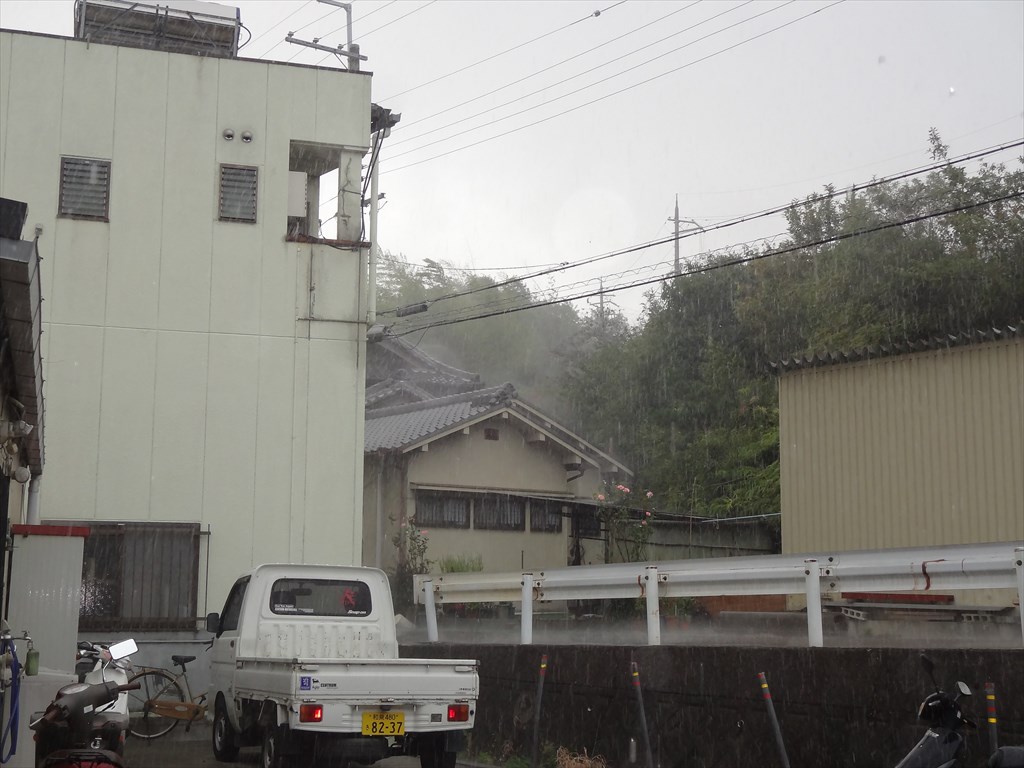 側溝からは水が溢れ出すわ、天井を打つ雨の音が凄いわ、