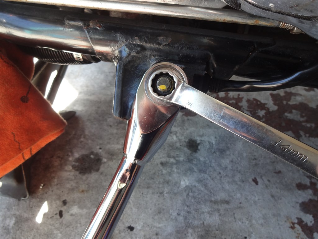 ナットを締め付ける時はスタンドを出した状態にしておきましょう。