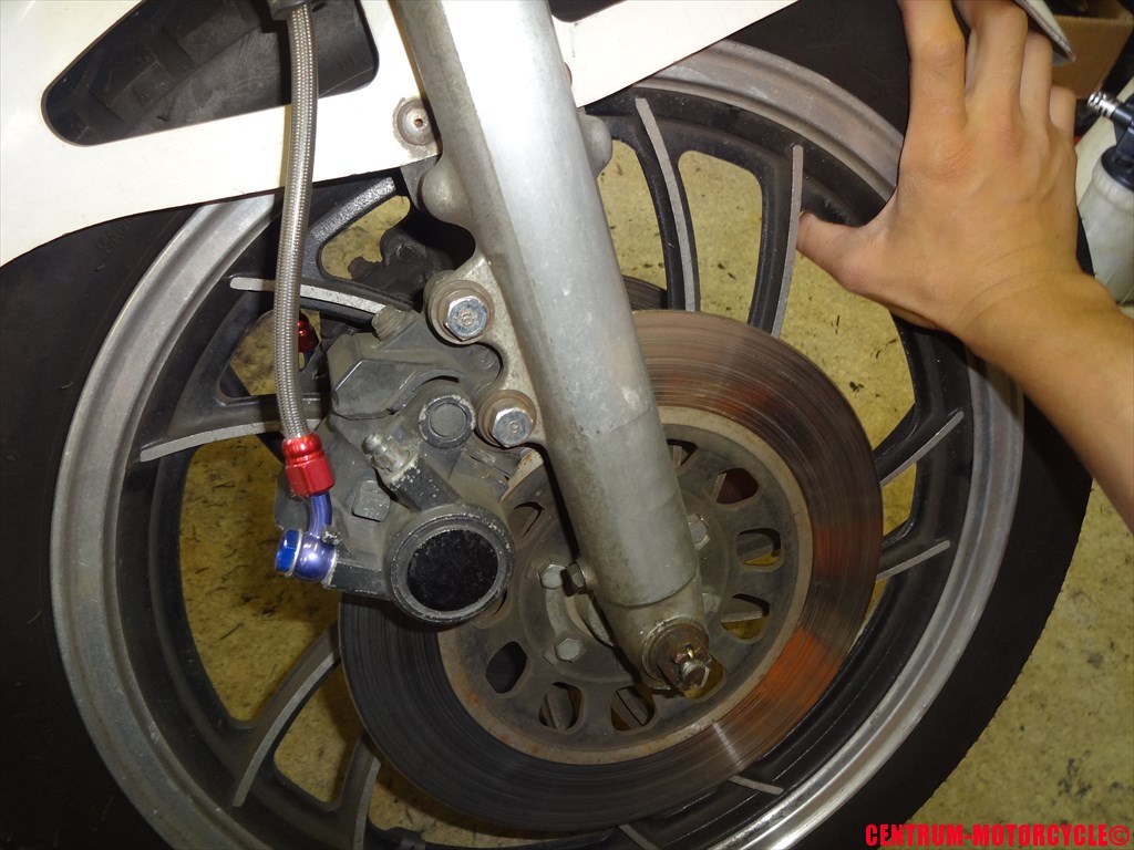 ブレーキキャリパーは左右共にブリーダーを接続して