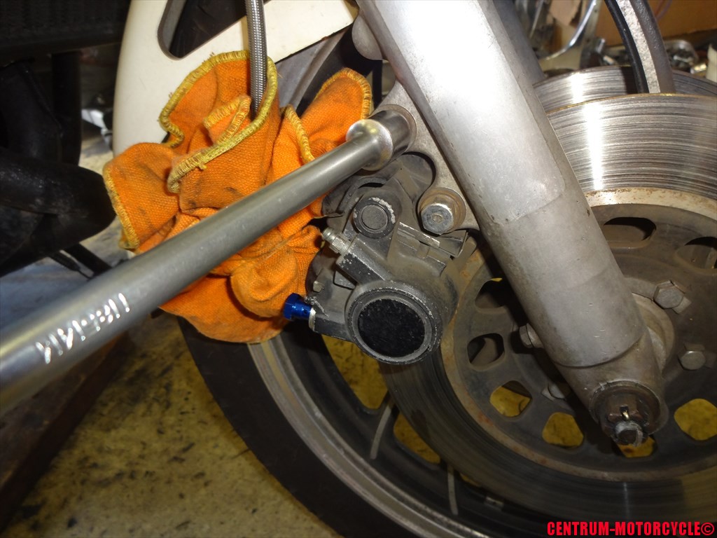 全て分解して車体から取り外す予定なので、事前にブレーキフルードを抜き取っておきます。
