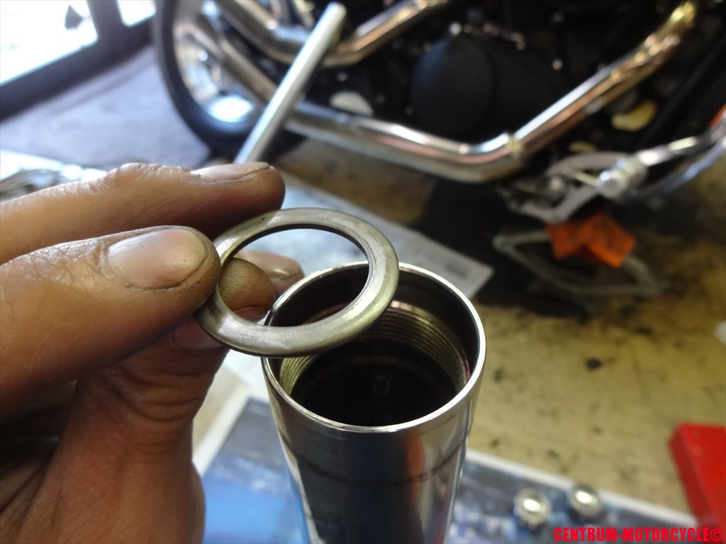 オイルをフォークに注ぎ入れる前に、予めスプリングとカラーの間に入れる