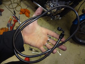 さて、このままですとメッシュホースの方が純正よりも細いので、