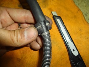 切り開いて取り外したラバーをメッシュホースに巻き付けて、