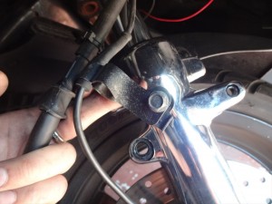 次はブレーキキャリパーの固定ボルトも緩めてっと。