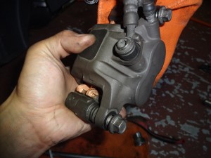 ブレーキキャリパーの清掃を終え、次に取り付ける
