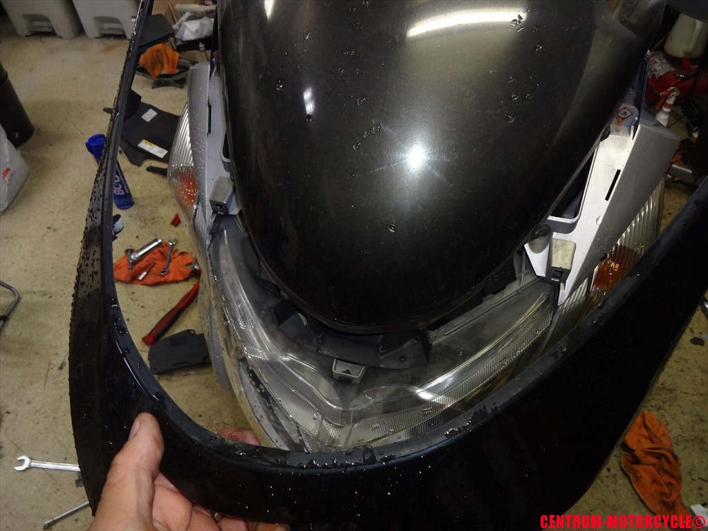 フロントカウルから、スクリーン下のカバーを取り外します。
