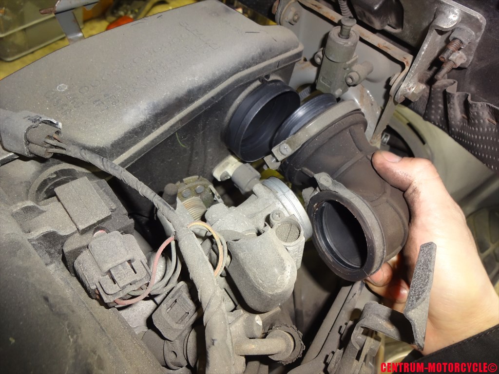 バンドをキャブ側、エアークリーナー側共に最大まで緩めます。