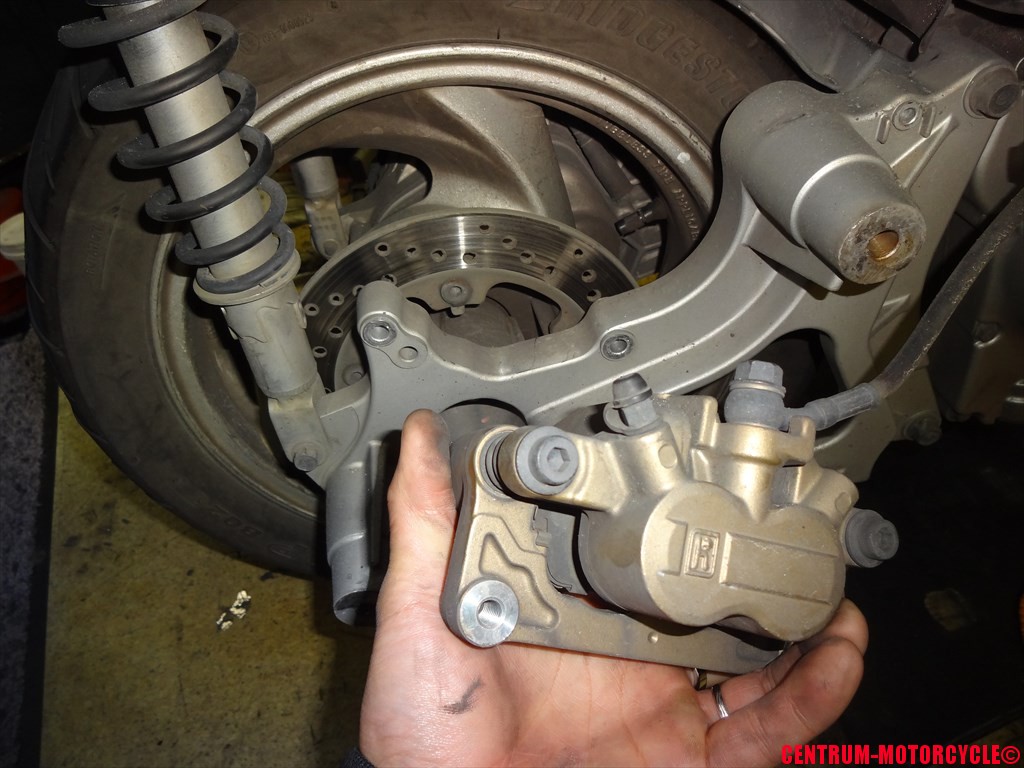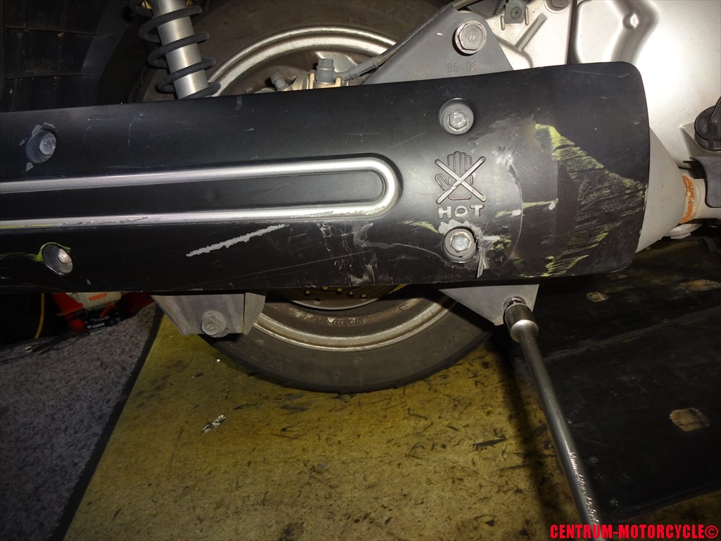 センターナット本締め後に、スイングアーム固定ボルトを本締め、