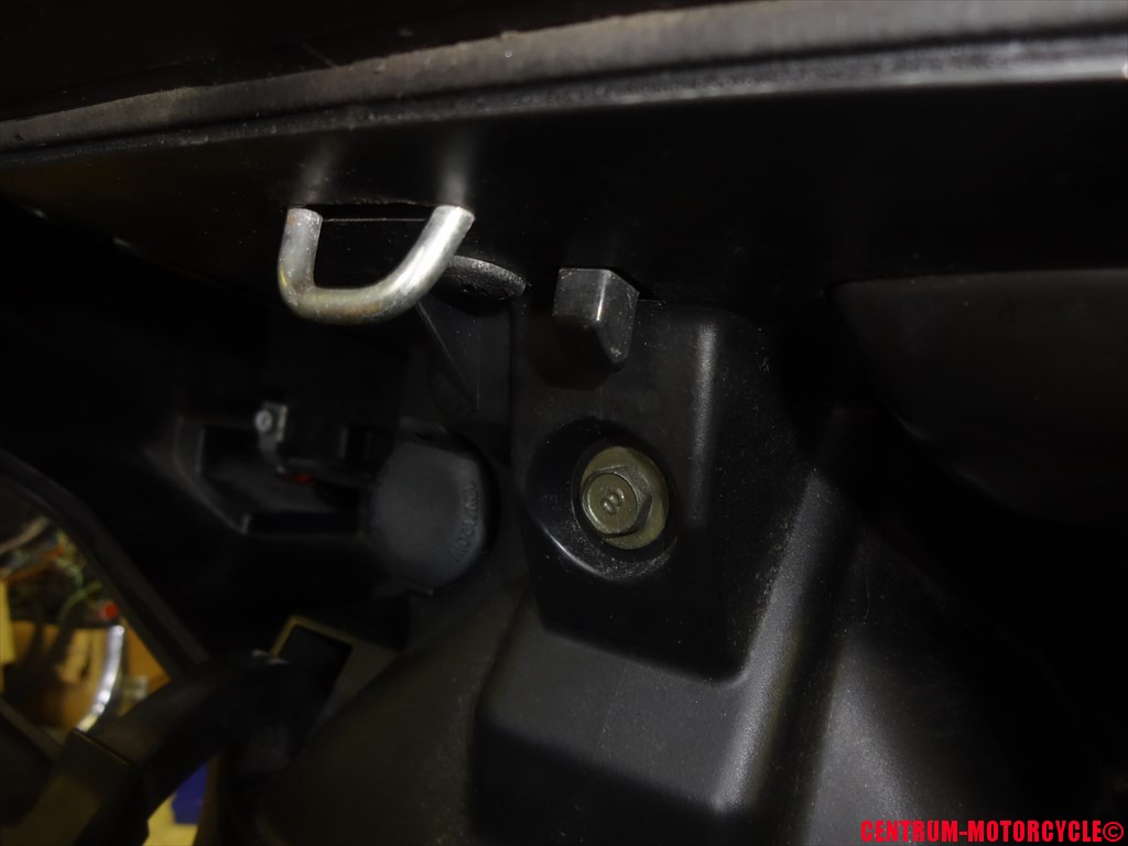 次はフロントホイール後方のフロントカウル固定ボルトを
