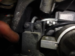 フロアマットを捲りあげて、フロントカウルの固定ボルトと