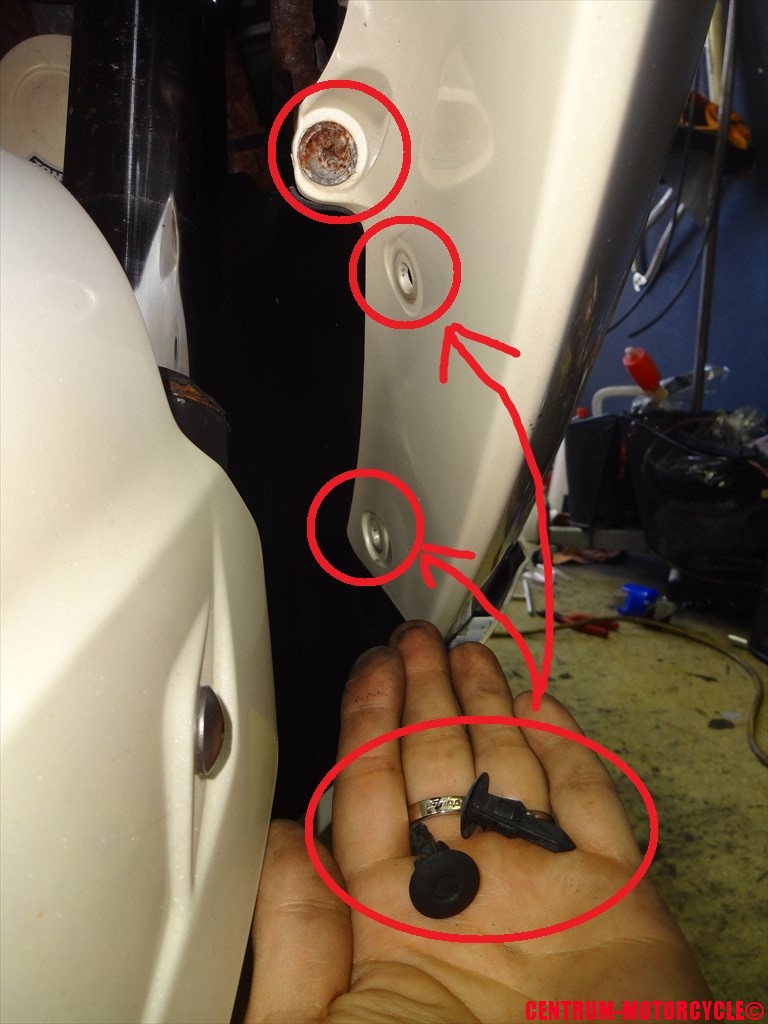 ※フロントカウル取り外し時に、サイドカウルを少し浮かせる必要がある為