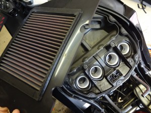 エアークリーナーボックスがぴっちりとフレームの間に収まっています。