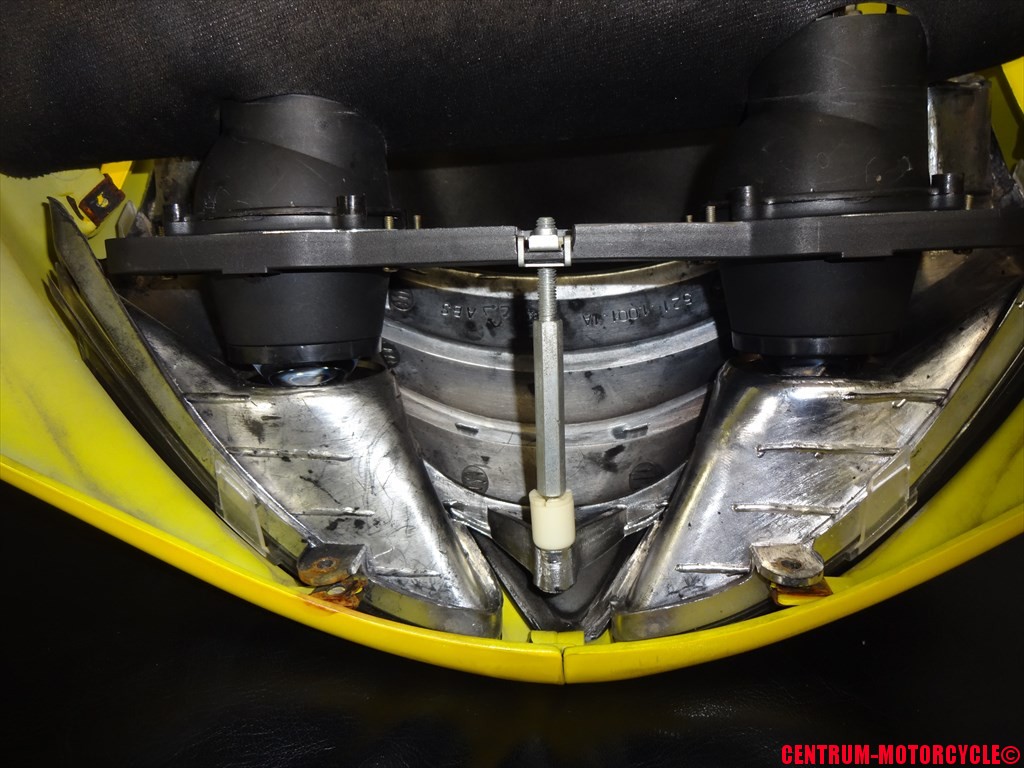 中央にある長いボルトが上下の光軸調整ボルトと