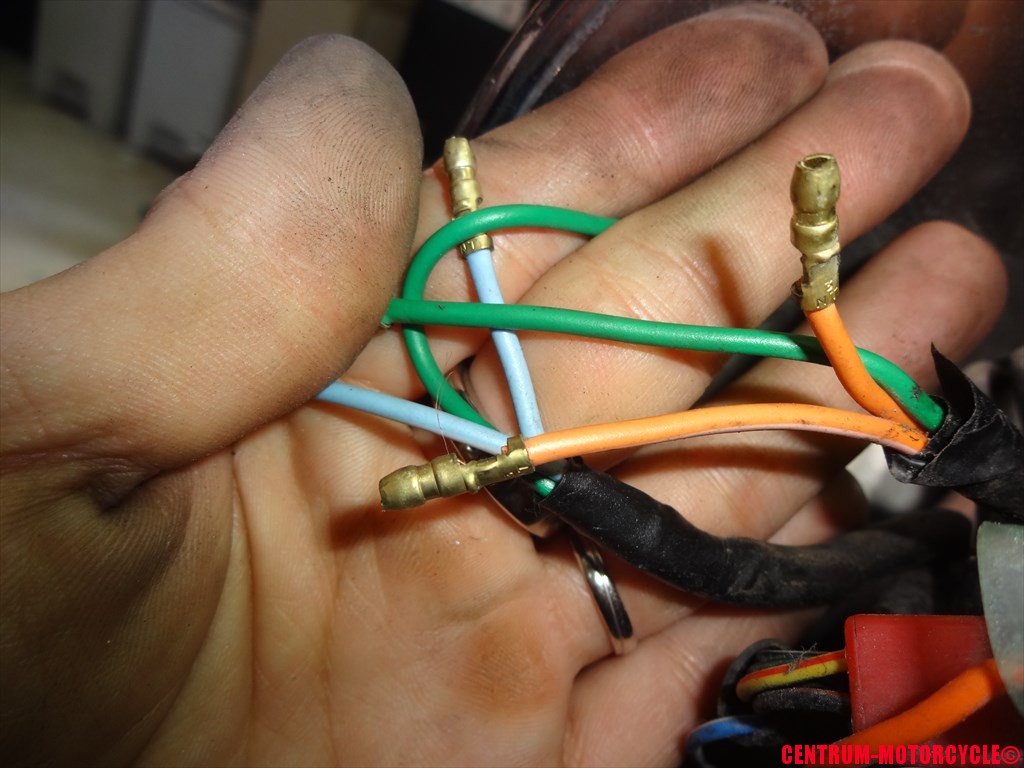 次にヘッドライトケース内部の結線部分(ギボシ)を取り外しましょう。