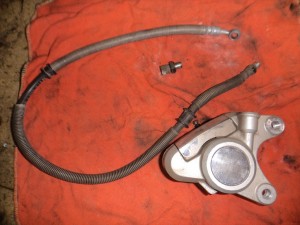 固定ボルトを取り外すと、ブレーキキャリパーを