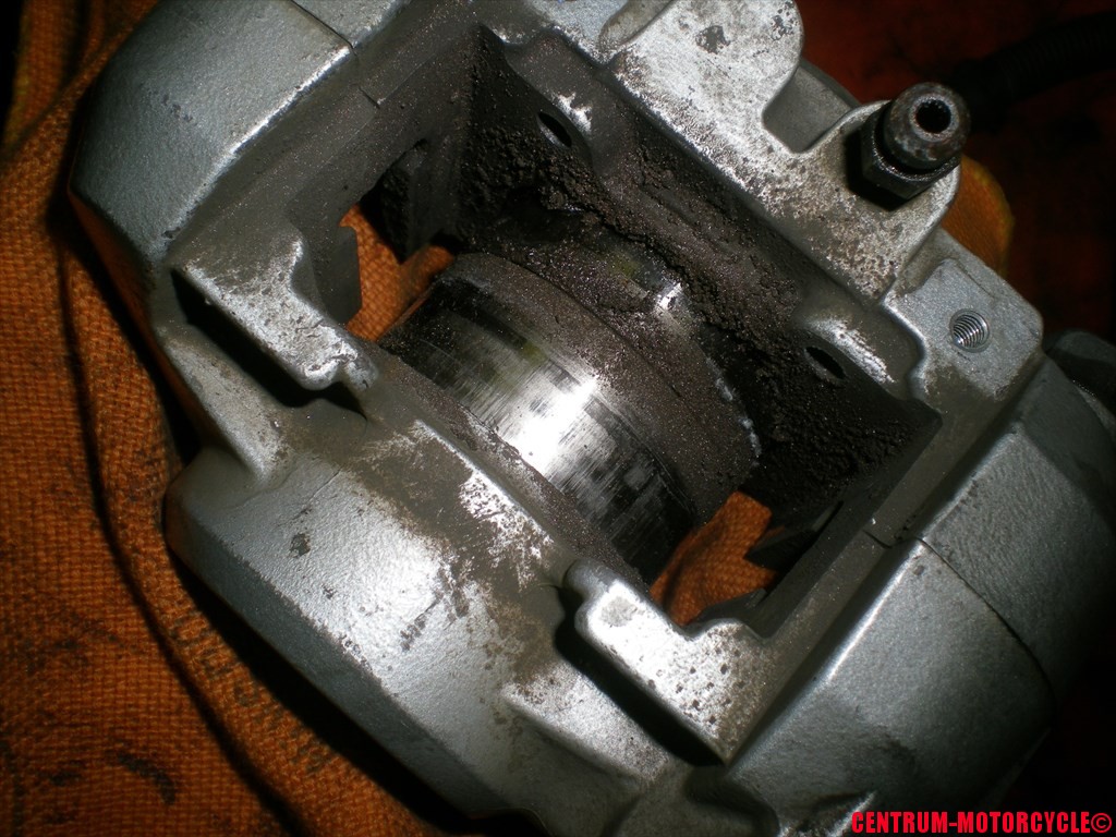 そしてブレーキキャリパー側はというと、こんな状態ですね。