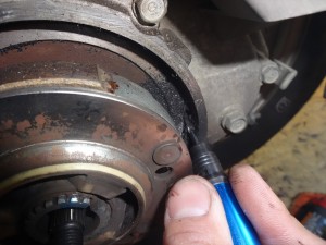 まずはプーリー部分からセンターナットをインパクトレンチで緩めて