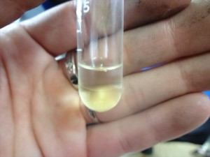 「試験管にですね、ブレーキフルードを入れてですね・・・」