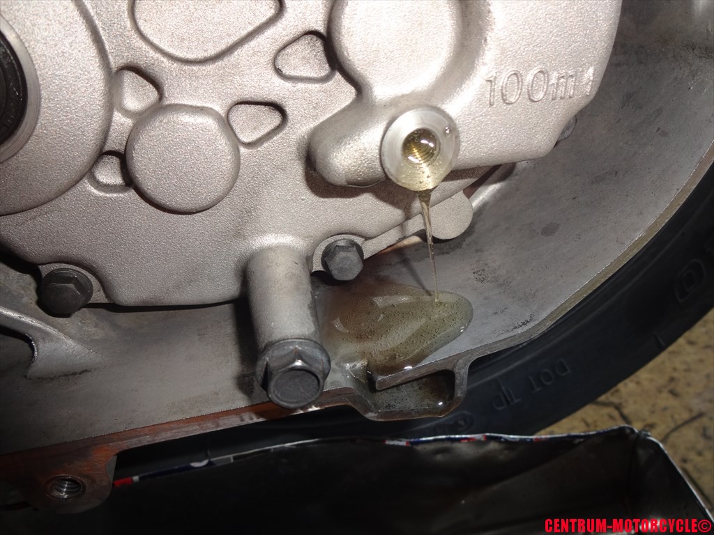 チェックボルトからオイルが出なくなれば、それが規定量という事です。