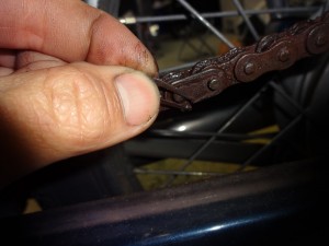 ずるずると引っ張って古いチェーンを抜き取りましょう。