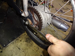 ナットを取り外したら、チェーンアジャスタが引っ掛からない様に