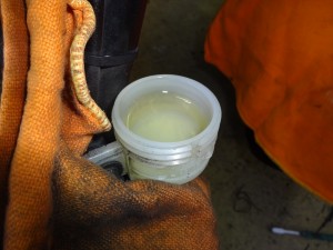 カップに再度ブレーキフルードを追加して、ブレーキペダルを踏みながら