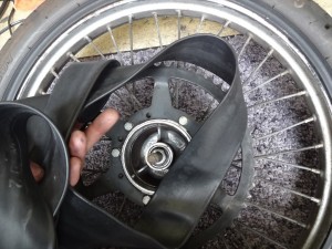 次にタイヤ側に予めチューブを少しだけ空気を入れて