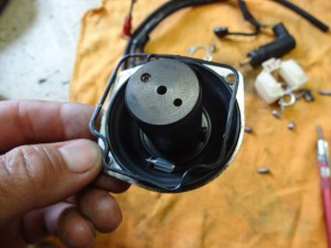 木片やプラスティックなどでメインジェットホルダーを叩いて